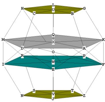 of the dodecahedron. U,X, W and V are the centers of these 4 planes which line