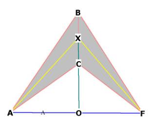 ACB and FBC are faces of the octahedron. AX and XD are lines from the face
