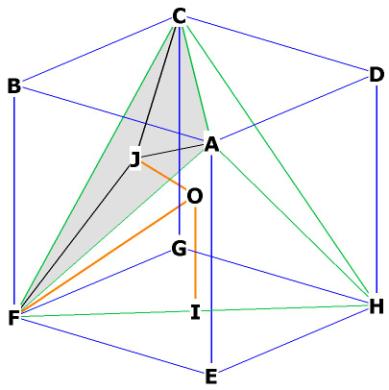 The 4 faces are CFH, CFA, HFA and HCA as before. The middle of face CFA is J.